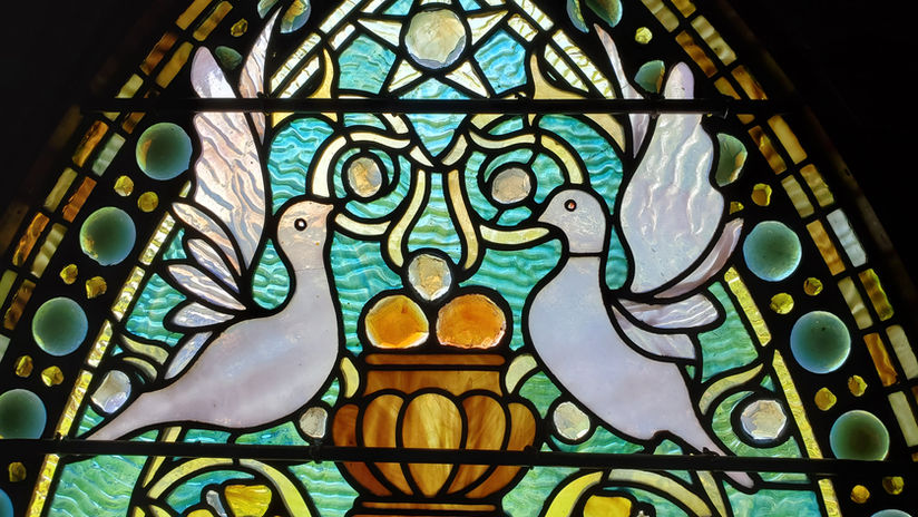 The nave windows, four on each side of the aisle, and the dove window in the sanctuary, were given by various parishioners in memory of family and friends.